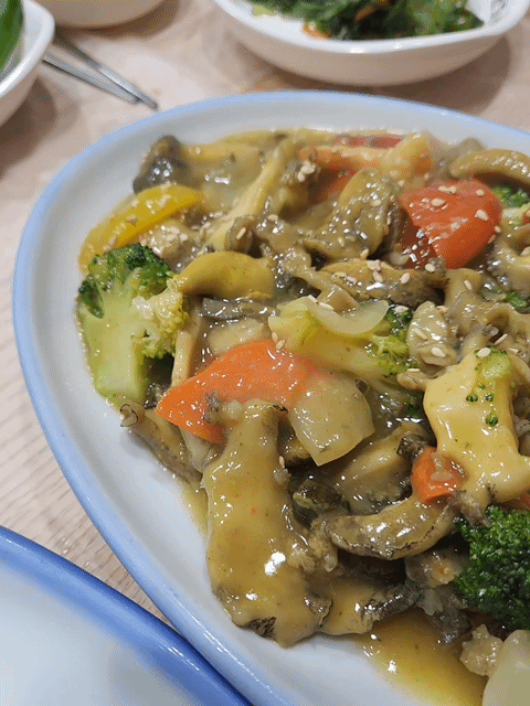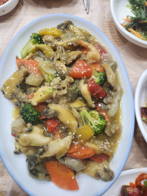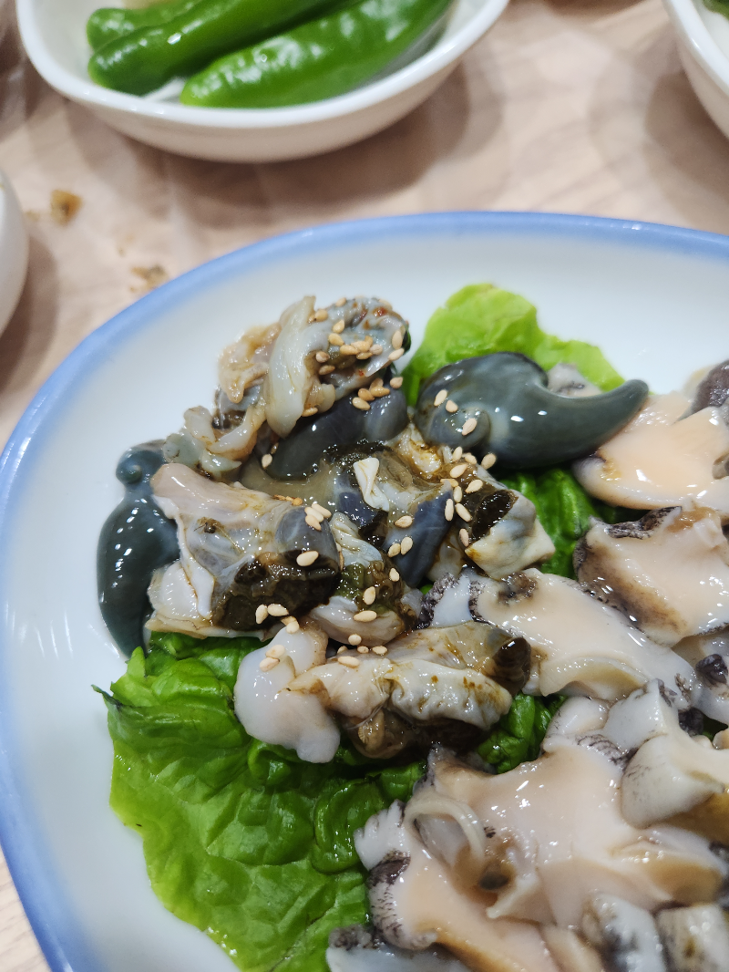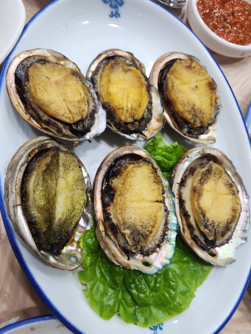 - 전복 코스요리 순서 : 회→구이→야채볶음→물회→죽