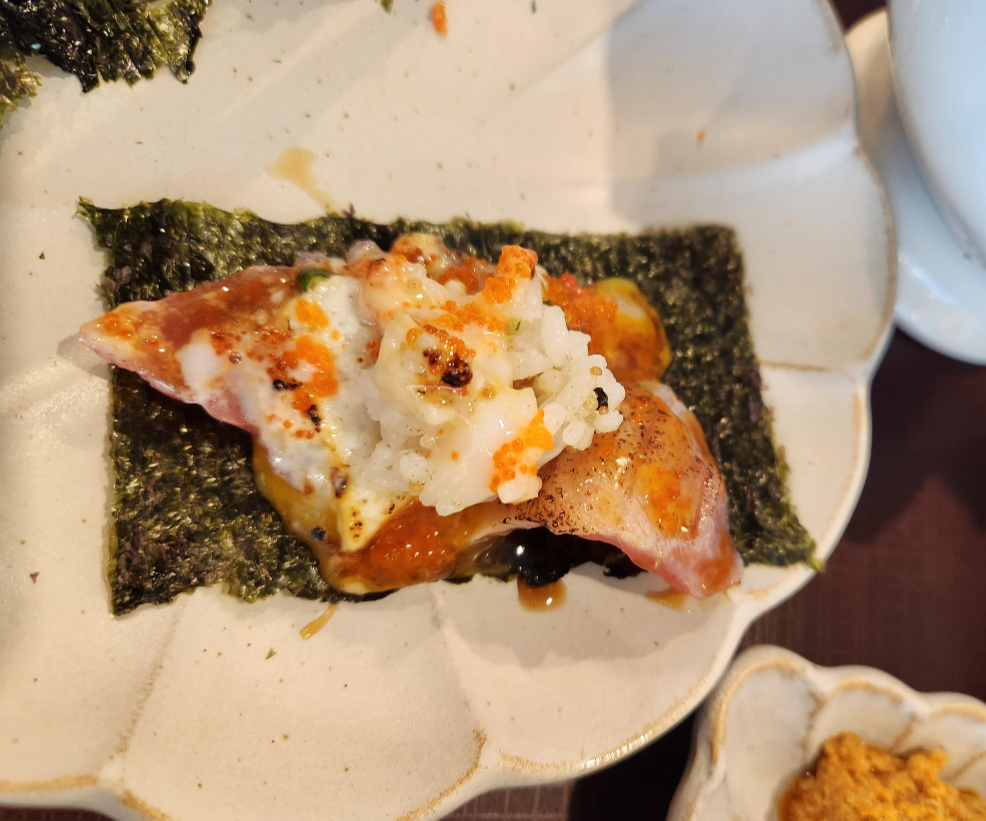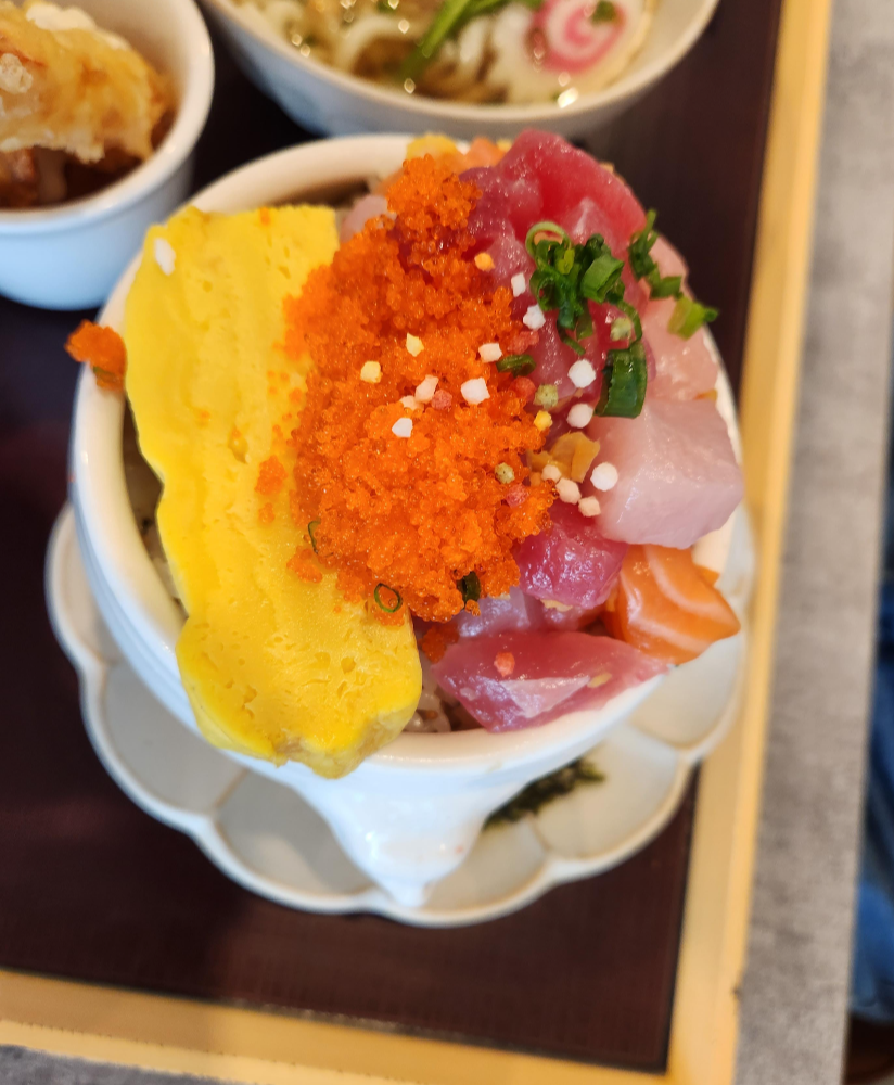 제철 활어, 날치알, 다마고야키(일식 계란말이)가