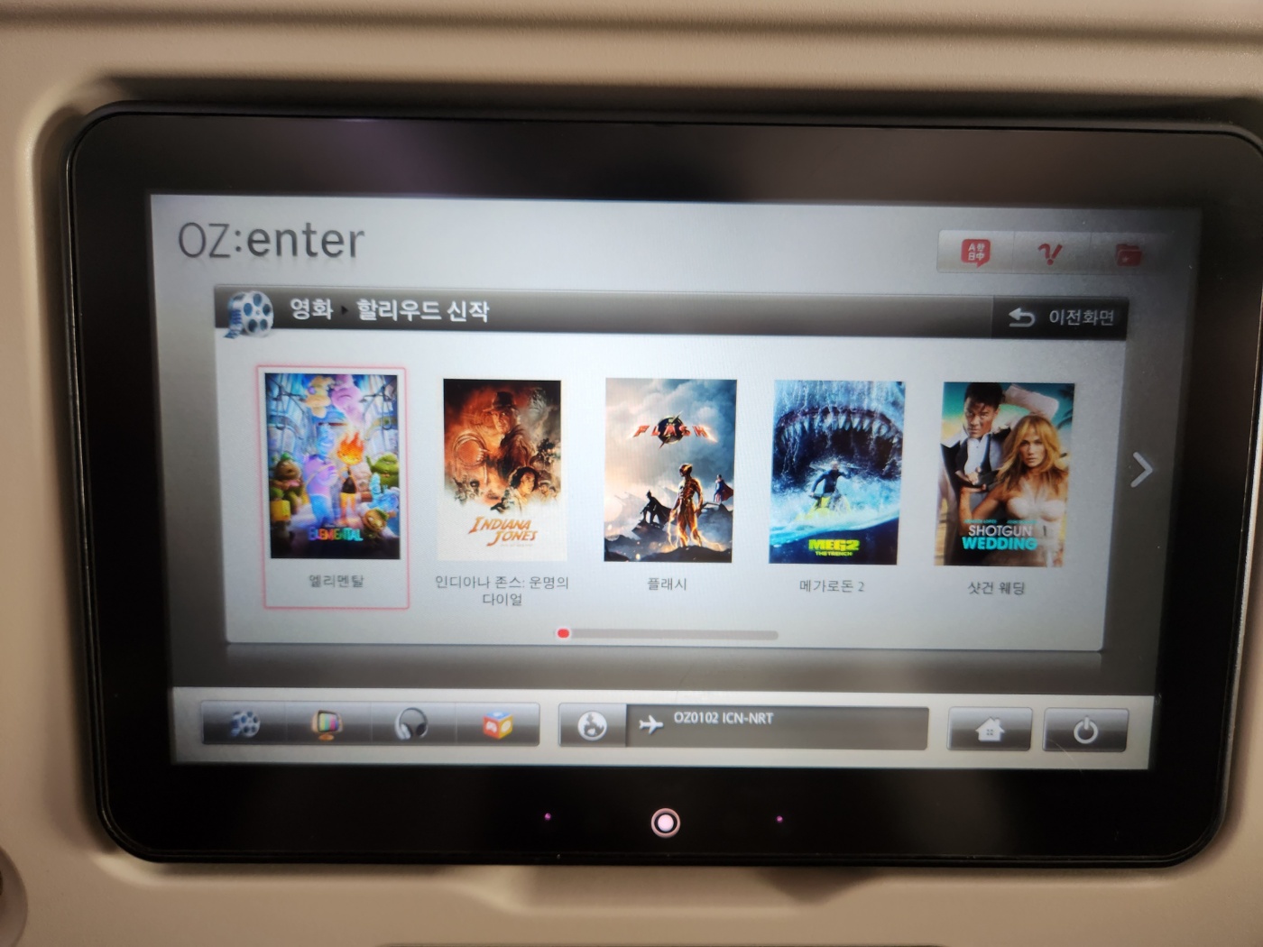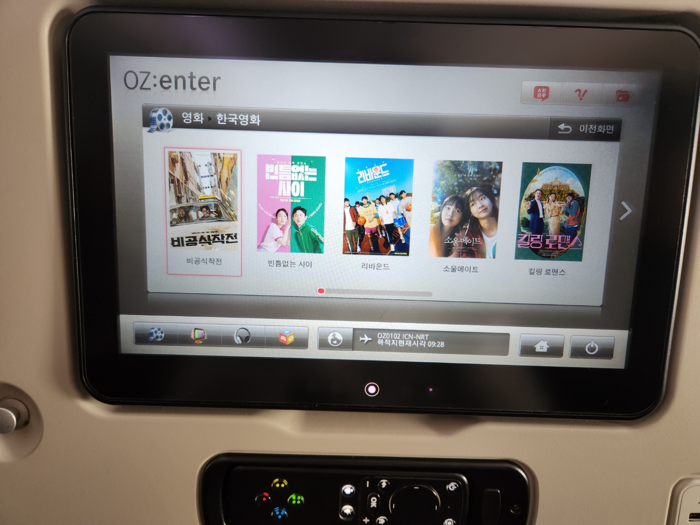 4. 아시아나 항공(OZ0102편) 기내 엔터테인먼트