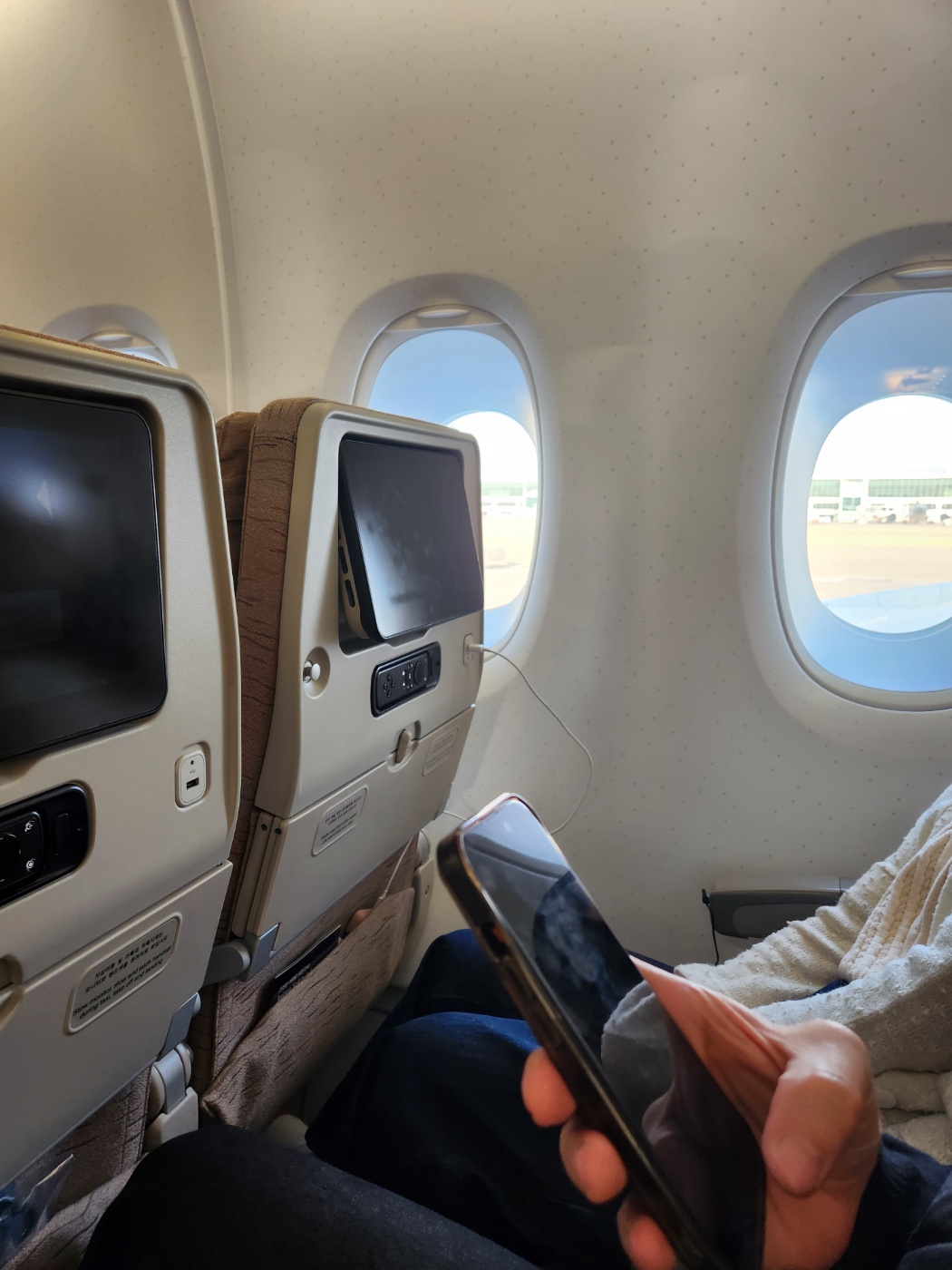 온라인 체크인을 통해 미리 탑승권 발급과 미리 지정했던 좌석인 맨 앞에서 4번째 줄에 앉았습니다.