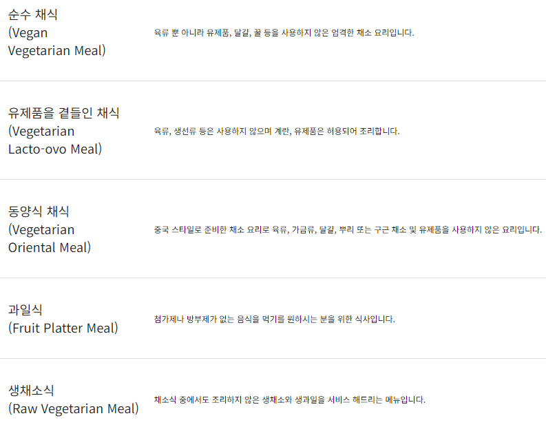 특별 기내식 종류는