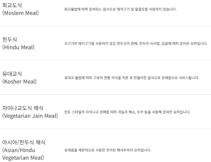 - 특별 기내식은 기내식 제공 구간만 가능하며, 항공기 출발 24시간 전까지 주문가능합니다.