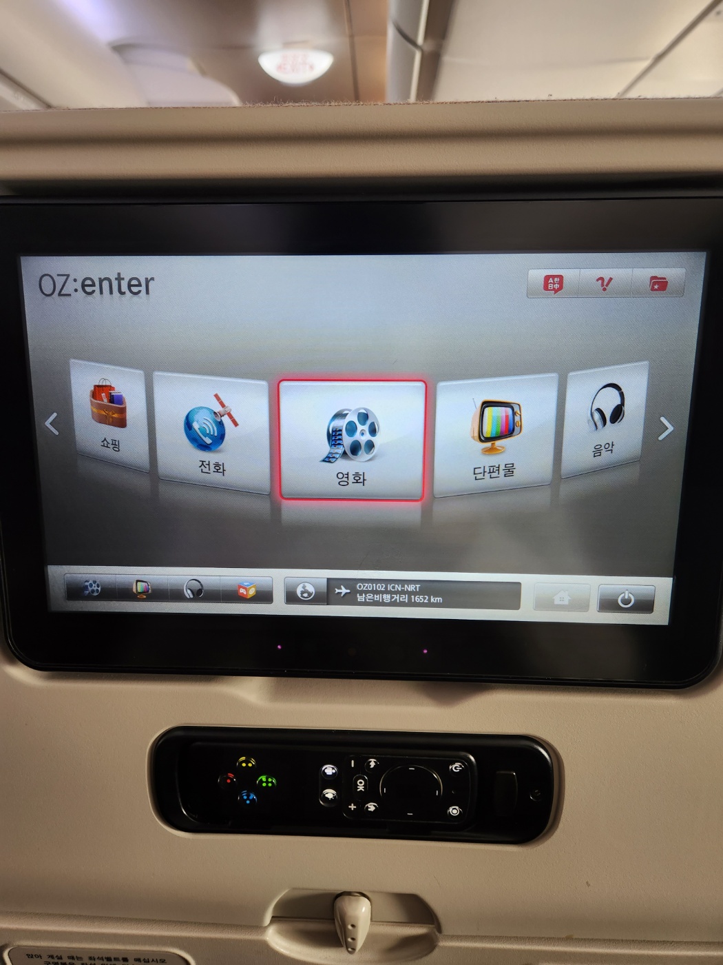 4. 아시아나 항공(OZ0102편) 기내 엔터테인먼트