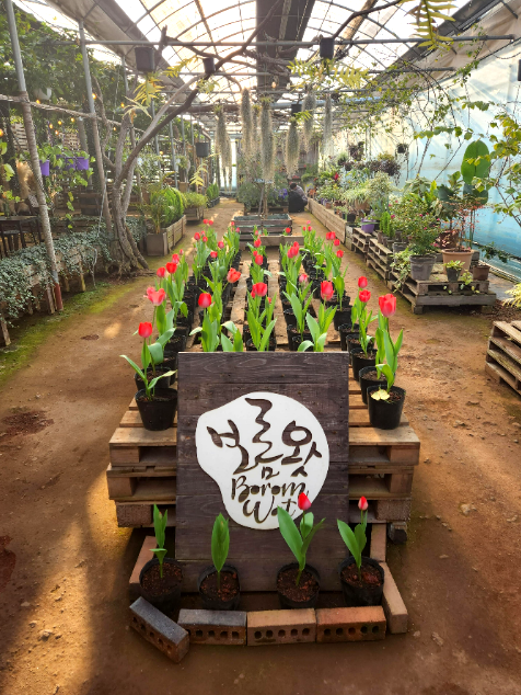 보롬왓 건물 내부는 온실 정원과 카페가 있어 다양한 식물들을 구경하며 여유롭게 쉴 수 있고, 야외 넓은 농장에서는 시즌마다 다른 꽃들과 동물들을 만나 볼 수 있습니다