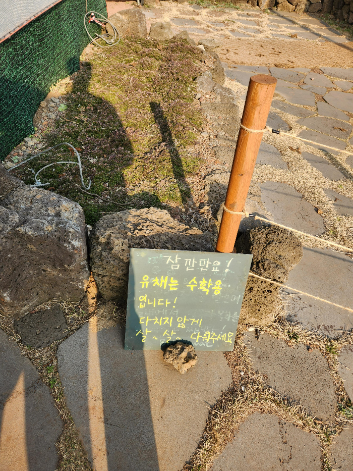 입장료를 내고 들어가는 길에 유채 주의하라는 안내 문구가 있었어요