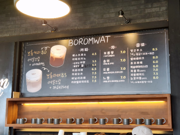 보롬왓 카페의 시그니처 메뉴인 '보름 커피'와 '보름 라떼' 메뉴가 눈에 띄었어요