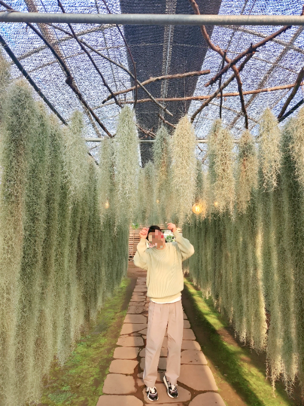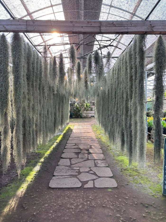 입구 통로를 지나 들어오자마자 위에서부터 밑으로 길게 내려 뻗어 있는 틸란드시아가 양 옆으로 자리 잡고 있는 '틸란드시아 길'이 나옵니다