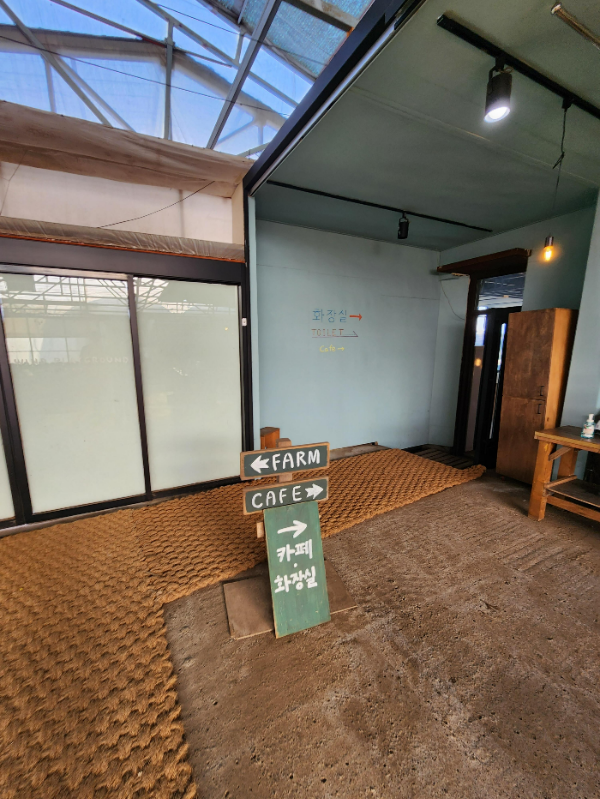 여기서는 바로 야외(꽃밭)로 나갈 수도 있고, 카페로도 갈 수 있습니다