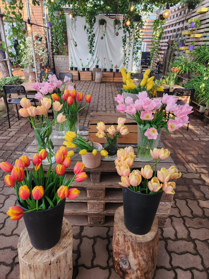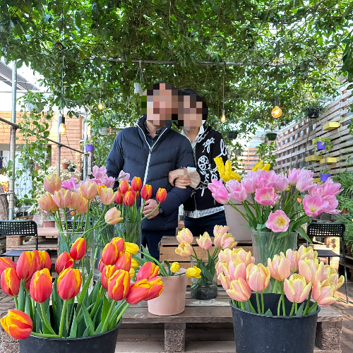 실내 정원이 포토존 천국이었는데 그중에서도 여기 튤립 포토존이 제일 예뻐서 인기가 많았어요