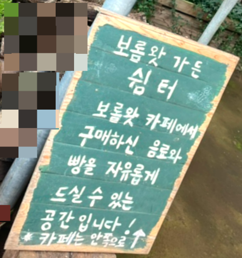 이곳 실내정원 보롬왓가든에 테이블과 의자가 있어서 안쪽에 있는 보롬왓 카페에서 구매한 음료와 빵을 다시 이곳으로 돌아와 먹어도 된다는 안내 문구가 있었어요