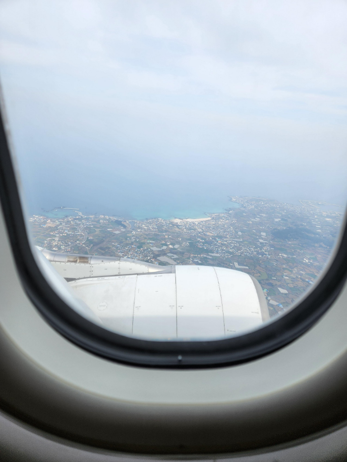 제주 상공 위에서 창문을 바라보니