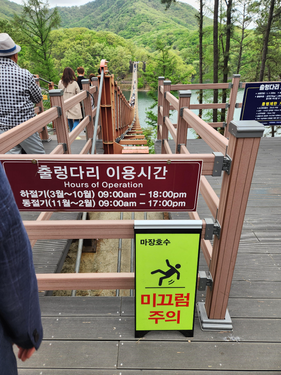 마장호수 위로 길게 뻗어있는 출렁다리가
