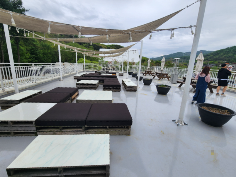 나머지 오른쪽 반은 외부 테라스로 되어 있었어요