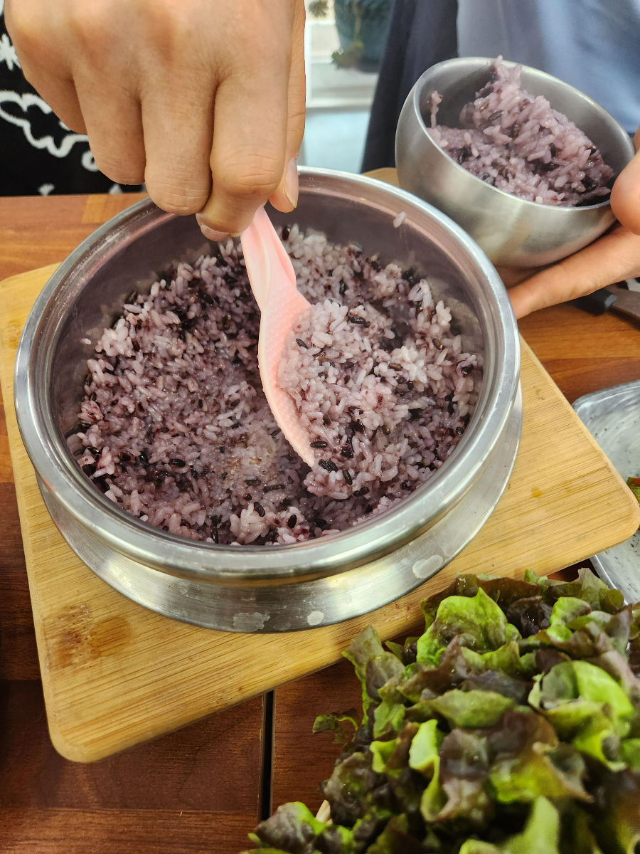 흑미 밥이었고, 개인 밥그릇에 덜어 먹는데
