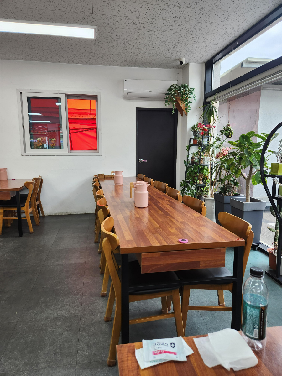 기다란 단체 테이블 좌석으로