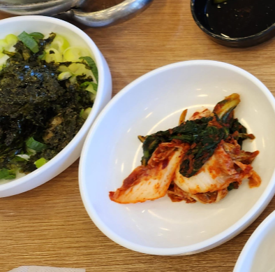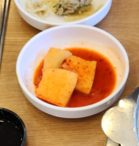 밑반찬으로 배추김치와, 섞박지가 나오고,