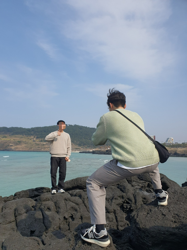 화강암지대에 올라서서 서우봉을 등지고 사진 찍으면 배경이 멋지게 나오더라고요 ^^