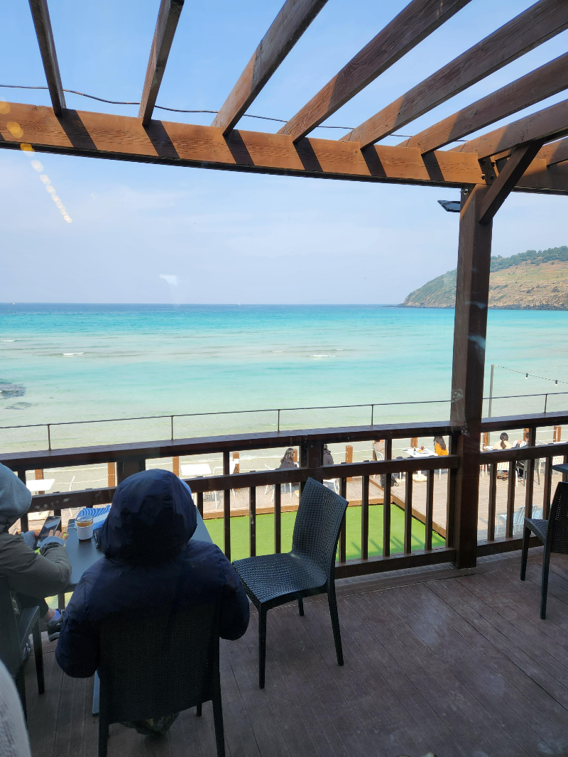 바로 눈앞에 함덕해변이 있어서 시아도 확 트이고 바다 색깔도 너무 이뻐서 힐링되는 기분이었어요~