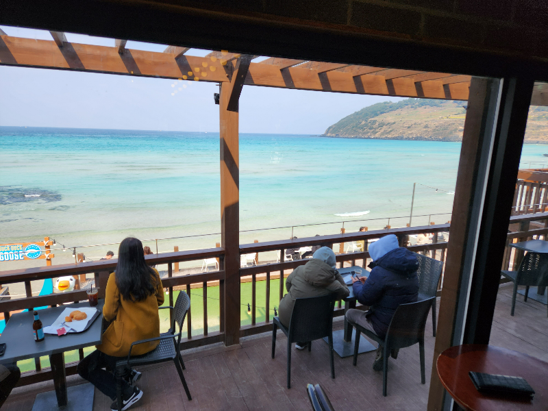 바로 눈앞에 함덕해변이 있어서 시아도 확 트이고 바다 색깔도 너무 이뻐서 힐링되는 기분이었어요~