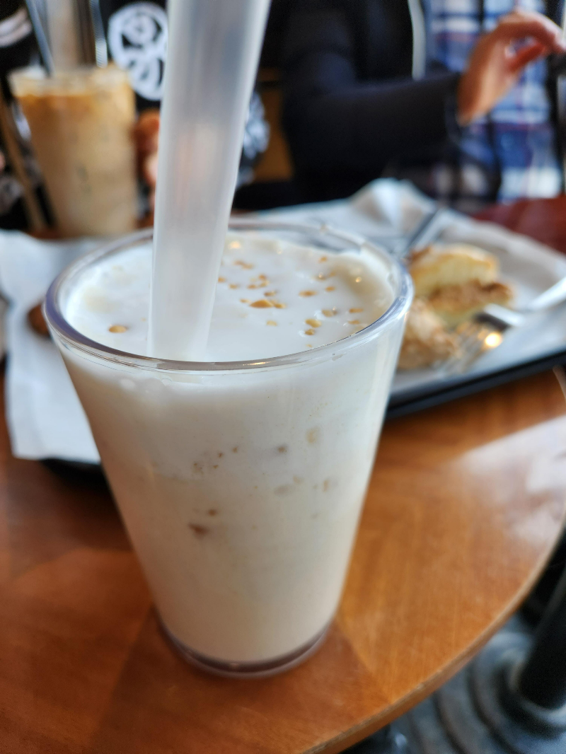 델문도 에이드 이외에도 여러 가지 음료를 주문했는데 동생이 주문했던 '우도 땅콩 라떼' 사진만 남았네요