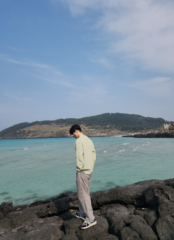 화강암지대에 올라서서 서우봉을 등지고 사진 찍으면 배경이 멋지게 나오더라고요 ^^