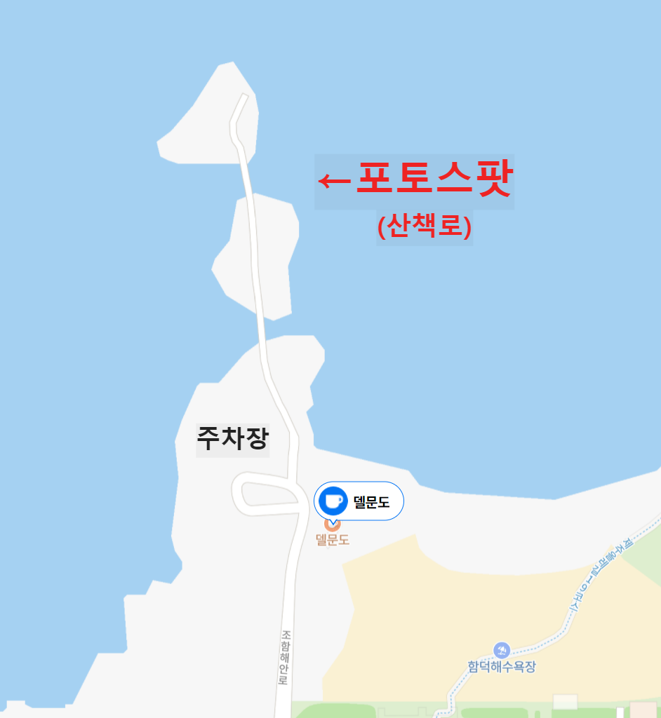 함덕 카페 "델문도"의 위치는 함덕 해수욕장 바로 옆에 위치하고 있습니다
