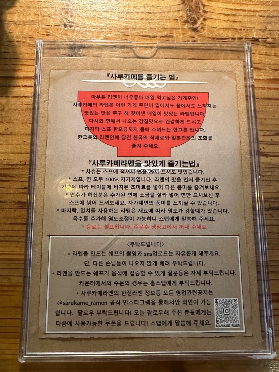 - 홈페이지 : https://www.instagram.com/sarukame_ramen/