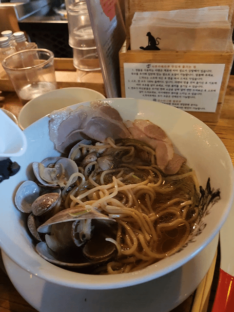 면발 한입... 차슈와 한입... 바지락과 한입..