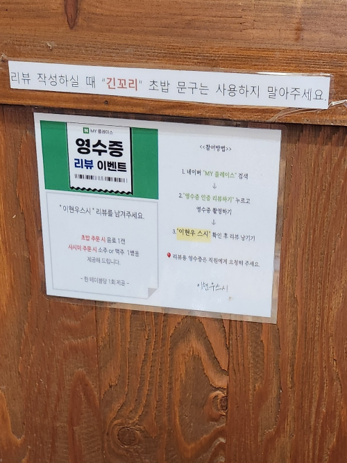 - 초밥 주문 시 [회무침+미니우동+새우튀김] 제공!