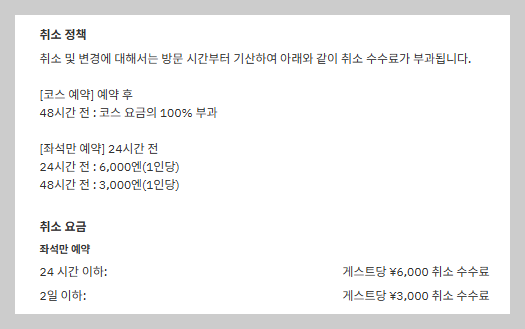 환불(취소) 위약금과 예약금 결제를 위해