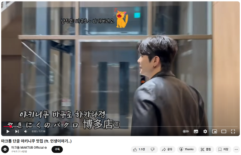 가수 마크튭님의 유튜브에도
