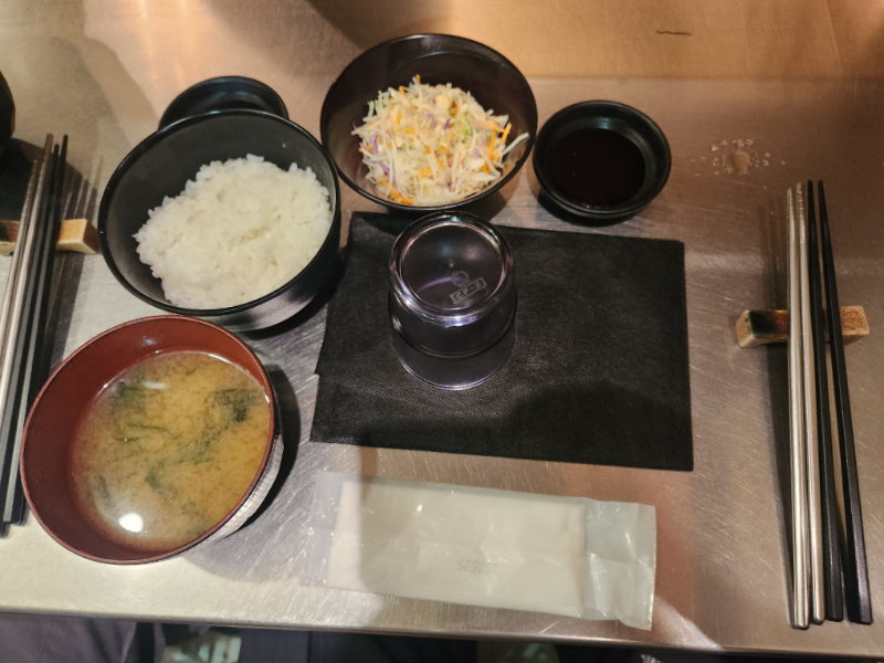 사이드로 추가한 세트(밥, 된장국, 샐러드)는