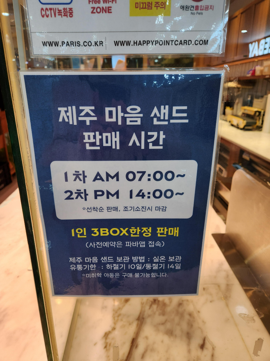 1) 파리바게트 제주공항 탑승점 (탑승객만 가능)