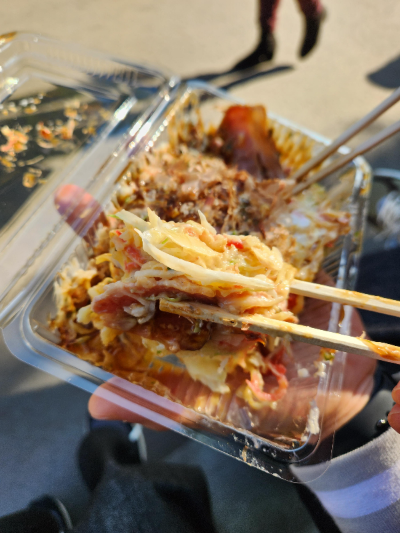 당고의 맛은 기대이하였는데, 이 오코노미야끼가 완전 물건이었습니다!